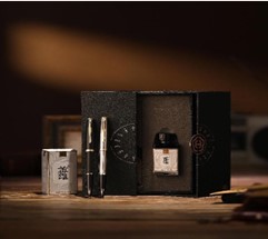 五福临门系列18K金笔——福笔(左二),笔身采用珍贵木材黑檀木,“富贵花开”图案栩栩如生充满浓郁的传统文化和民俗文化色彩。